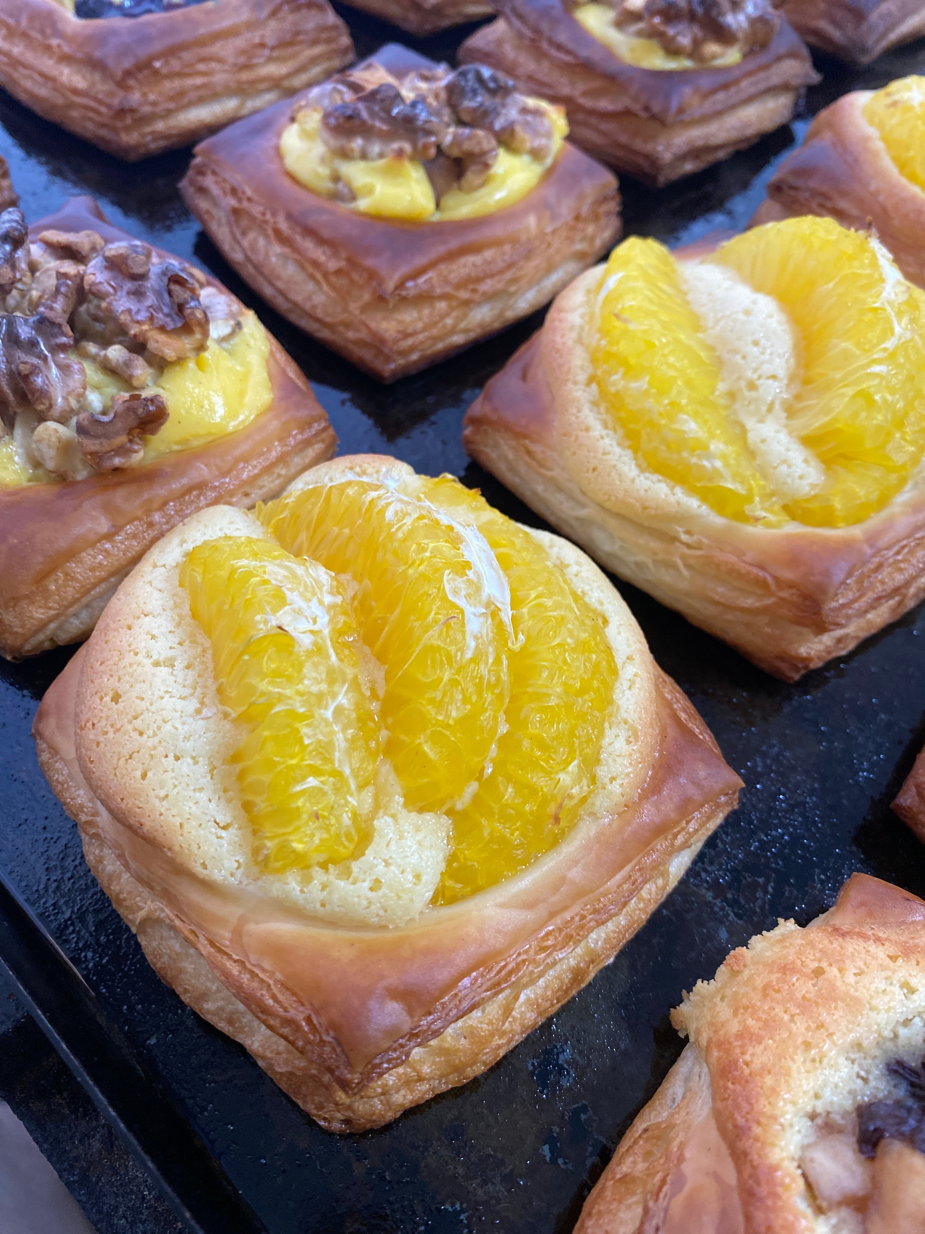 ほろ苦さと爽やかな酸味そして完熟ならではの甘さご美味しい旬の文旦と甘いアーモンド生地をクロワッサン生地に乗せて焼き上げました