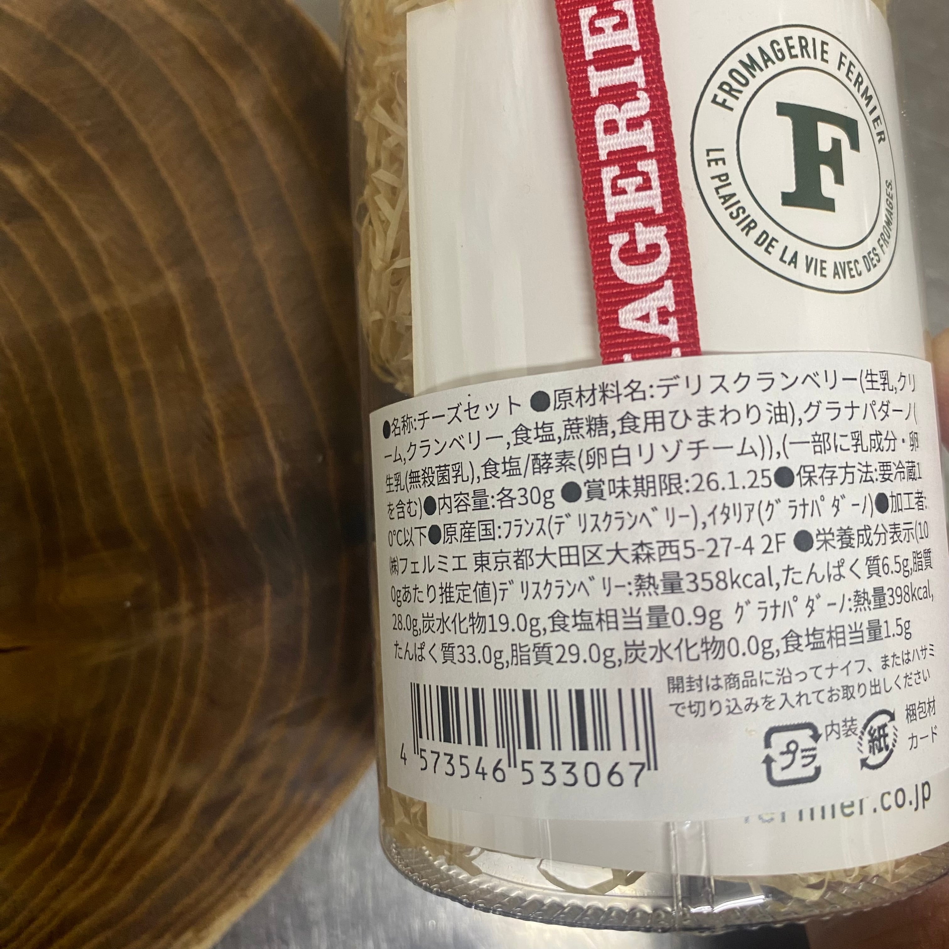 フレッシュチーズに甘酸っぱいクランベリーが乗ったデリスクランベリー、コクのある旨味のグラナパダーノの2種のチーズが入っています。