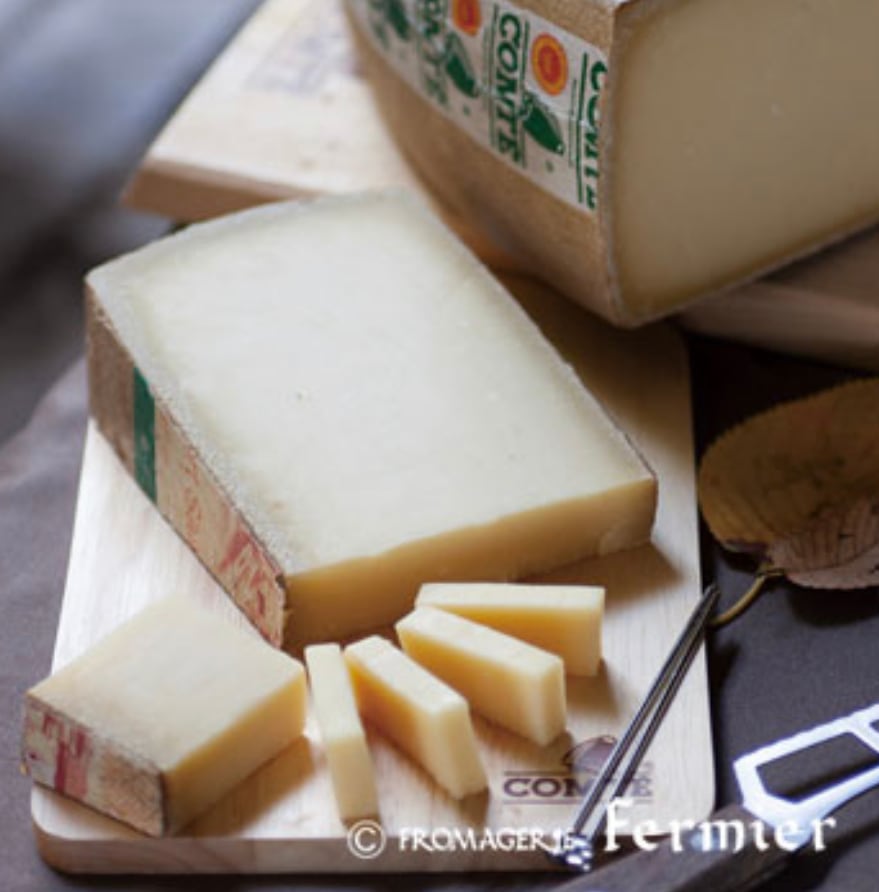 スイスとの国境、フランシュ・コンテ地方の名産品「コンテ」。フランスAOCチーズの中ではダントツの生産量を誇ります。AOCの審査は厳しく、毎年生産の5%がAOCを名乗る事が出来ません。各熟成段階で、ヘーゼルナッツやチョコレート、キャメルや栗、またコーヒー等、数十種類もの複雑ですばらしい味わいを感じとることができます。熟成するにつれて深まるコクをお楽しみ下さい。