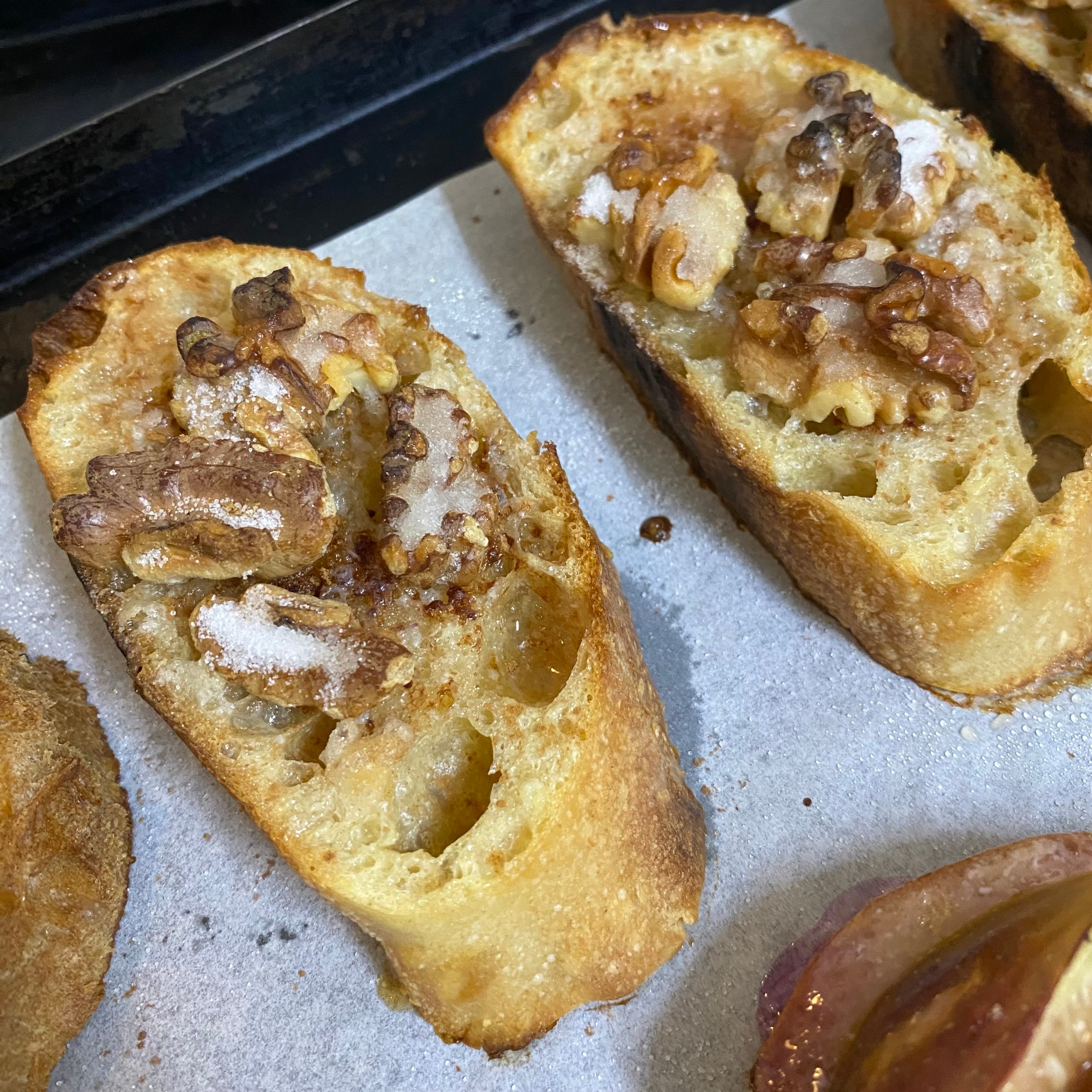 くるみを乗せたハード系の全粒粉パンをシナモン香るフレンチトーストにしています。驚くほど美味しいハード系パンのフレンチトーストをお楽しみください。